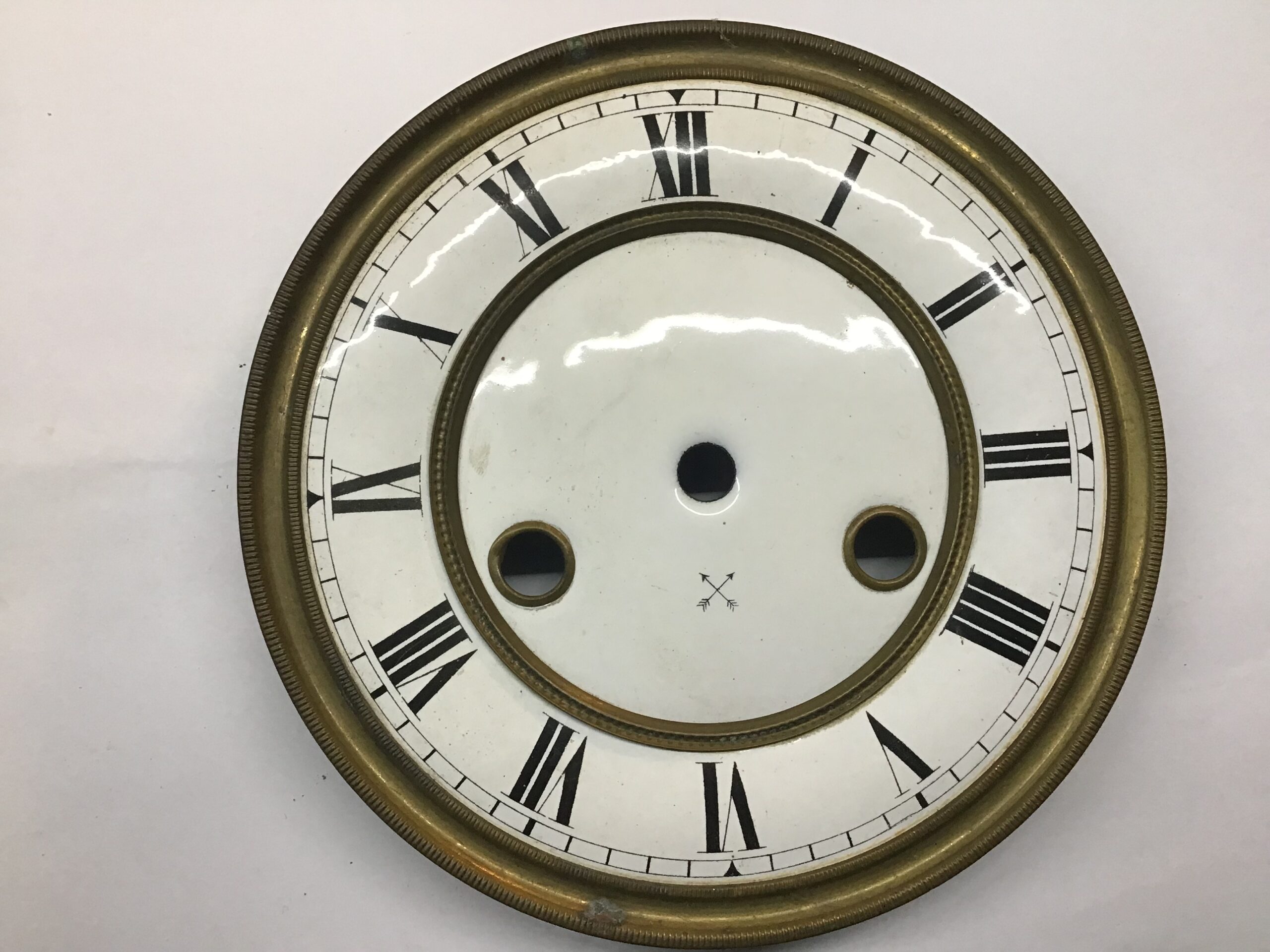 Emaille wijzerplaat gekruisde pijlen doorsnee 14,5 cm no 231