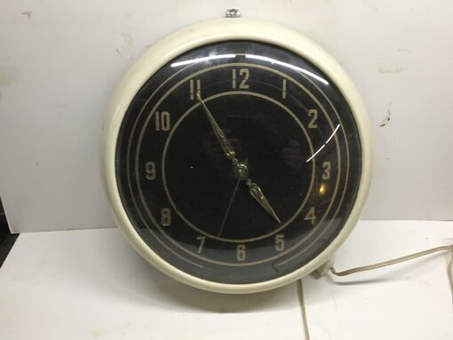 Bakelieten wit elektrisch wandklok doorsnee 28 cm
